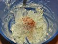 In einer Schüssel die Avocadostücke mit der Creme fraiche vermischen und mit jeweils einer Prise Salz, Pfeffer und Cayennepfeffer würzen.