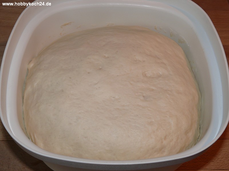 In der Regel sollte eine Stunde langen. Wir stellen den Teig immer unter die Decke vom Wasserbett.